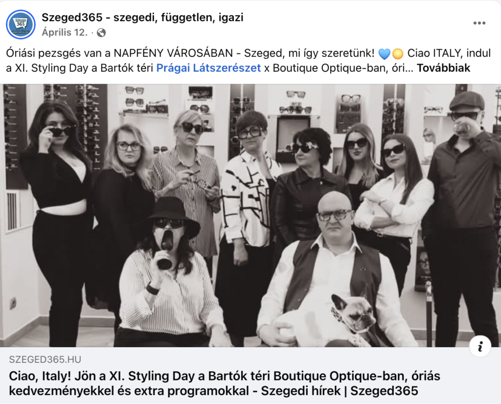 „Nagyon örültem, amikor megtudtam , hogy hamarosan butik optike nyílik Szegeden. A városban nincs lehetőség egy helyen vásárolni prémium minőségű, designer ruhadarabokat, napszemüvegeket és kiegészítőket, így izgatottan várom a Butique Optique by Prágait!”